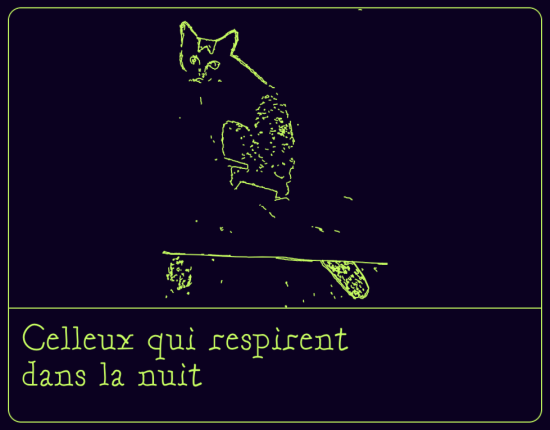 Les relations avec les vivant·es ne s’arrêtent pas au moment de leur mort. La manière dont nous nous relions, dont nous partageons et essayons d’établir des rapports de création avec les personnes disparu·es est un travail à co-inventer. Suivant des perspectives fictives et réelles, le récit interactif Celle·ux qui respirent dans la nuit propose de suivre le chemin de Iel·le, qui habite en visiteur·euse un jardin partagé traversé par des voix et des présences. Évoluant entre écriture documentaire et polysémie ludique, le récit propose des choix qui permettent de tisser et voir grandir les relations qui lient mort·es et vivant·es et les aident, parfois, à respirer ensemble dans la nuit.